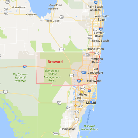 Broward County is a county located in the U.S. state of Florida. As of 2010, the population was 1,896,425, making it the second-most populous county in Florida and the 17th-most populous in the United States. Its county seat is Fort Lauderdale. Wikipedia
