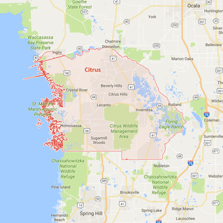 Citrus County is a county located in the U.S. state of Florida. As of the 2010 census, the population was 141,236. Its county seat is Inverness, and its largest community is Homosassa Springs. Wikipedia