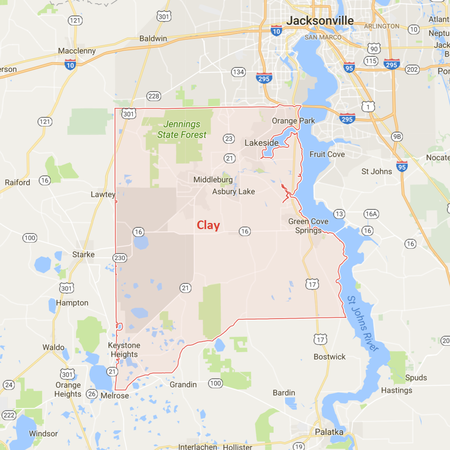 Clay County is a county located in the U.S. state of Florida. As of the 2010 census, the population was 190,895. Its county seat is Green Cove Springs, Florida. Clay County is included in the Jacksonville, FL Metropolitan Statistical Area. Wikipedia