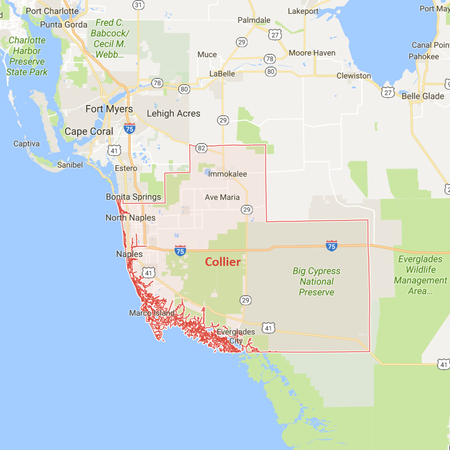 Collier County is a county located in the U.S. state of Florida. As of the 2010 census, the population was 321,520. Its county seat is East Naples, where the county offices were moved from Everglades in 1962. Wikipedia