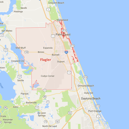 Flagler County is a county on the east coast of the U.S. state of Florida. As of the 2010 census, the population was 95,696. Its county seat is Bunnell. Wikipedia