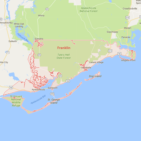 Franklin County is a county along the Gulf of Mexico in the Florida panhandle of the U.S. state of Florida. As of the 2010 census, the population was 11,549, making it the third-least populous county in Florida. The county seat is Apalachicola. Wikipedia