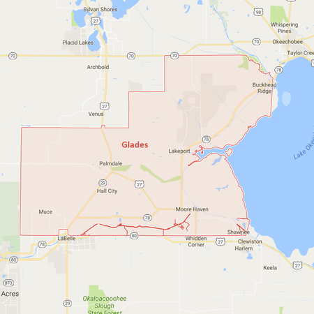 Glades County is a county located in the U.S. state of Florida. As of the 2010 census, the population was 12,884. Its county seat is Moore Haven. Wikipedia