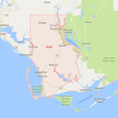 Gulf County is a county located in the panhandle of the U.S. state of Florida. As of the 2010 census, the population was 15,863. Its county seat is Port St. Joe. Gulf County is included in the Panama City, FL Metropolitan Statistical Area. Wikipedia