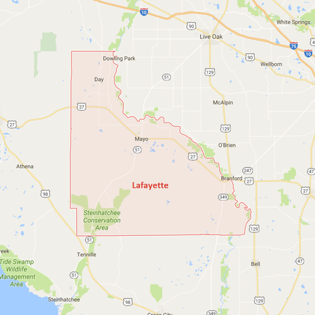 Lafayette County is a county located in the state of Florida. As of the 2010 census, the population was 8,870, making it the second-least populous county in Florida. The county seat is Mayo. Lafayette County is a prohibition or entirely dry county. Wikipedia