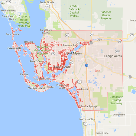 Lee County is a county in the State of Florida. As of the 2010 census, the population was 618,754. The county seat is Fort Myers, and the largest city is Cape Coral. Lee County comprises the Cape Coral-Fort Myers, FL Metropolitan Statistical Area. Wikipedia