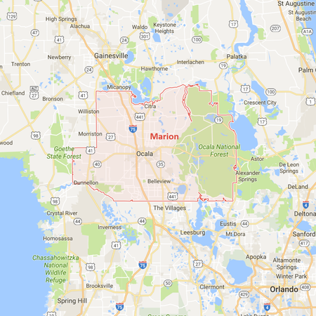 Marion County is a county located in the U.S. state of Florida. As of the 2010 census, the population was 331,298. Its county seat is Ocala. Marion County comprises the Ocala, FL Metropolitan Statistical Area. Wikipedia