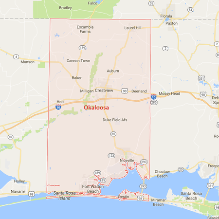 Okaloosa County is a county located in the northwestern portion of the U.S. state of Florida, extending from the Gulf of Mexico to the Alabama state line. As of the 2010 census, the population was 180,822. Its county seat is Crestview. Wikipedia