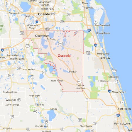 Osceola County is a county located in the U.S. state of Florida. As of the 2010 census, the population was 268,685. Its county seat is Kissimmee. Osceola County is included in the Orlando-Kissimmee-Sanford, Fla. Metropolitan Statistical Area. Wikipedia