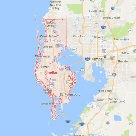 Pinellas County is a county located in the state of Florida. As of the 2010 census, the population was 916,542. Its county seat is Clearwater, and its largest city is St. Petersburg. Wikipedia